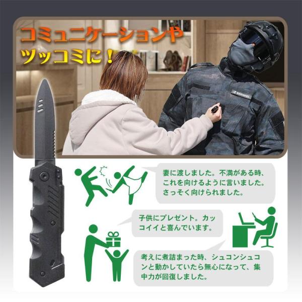 【家族や友人、仲間内で】ヒマな時や遊びたい時、このナイフがあれば楽しく修羅場ごっこができます。護身術の訓練にも使えるかもしれません。※顔に向けては使わないでください。
