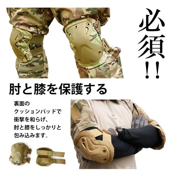サバイバルゲーム(サバゲー)でヒジやヒザを保護するためのエルボーパッド&ニーパッド。