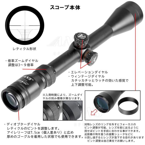 ANS Optical 3-9倍 可変ズーム 3-9x40 フルコーティングクリアレンズ ハイエンドモデル 1インチ 20mmレール 20mmレイル