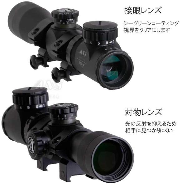 300mmほどある長めのスコープに比べエイミングしやすく、イルミネーション付きのスコープにしては軽量な方なので、しっかりとした機能を搭載しながらも、銃に装着した際、負担になりにくく、アタッカーマンや女性にもオススメ♪