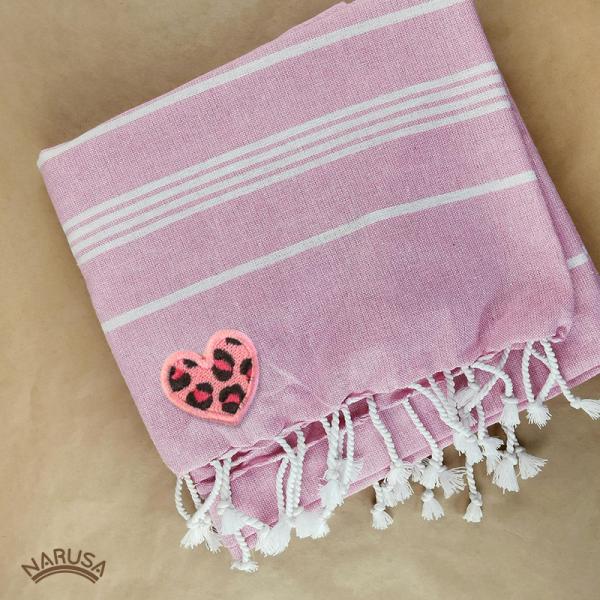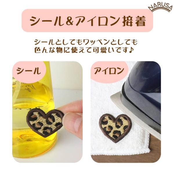 【メール便】NARUSA 刺繍シール ヒョウ柄 ハート 4色 3cm 6cm 小 大 アイロン接着 ワッペン アップリケ 可愛い かわいい 日本製