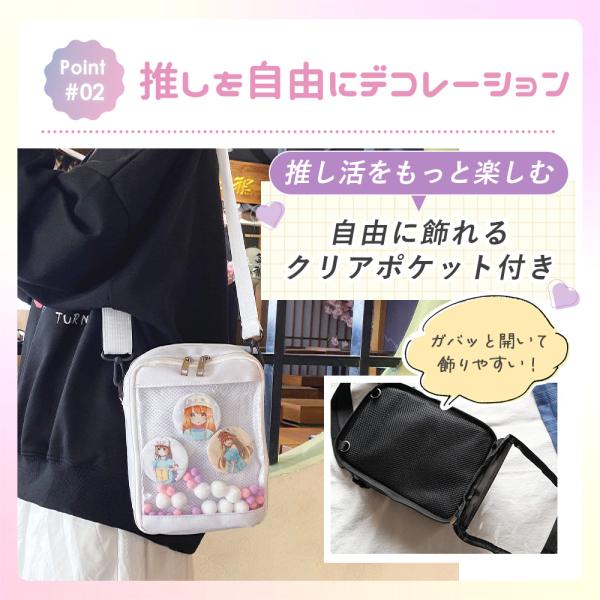 推し活 バッグ 痛バッグ 痛バ バック ショルダーバッグ 小さめ 透明 肩掛け 斜め掛け 黒 白