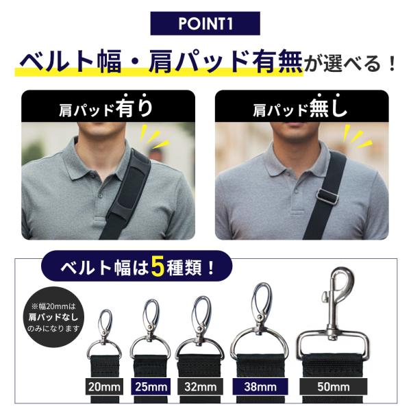 ショルダーベルト ショルダーストラップ 太め バッグ 付け替え メンズ 黒 肩パッド 交換 単品 幅広