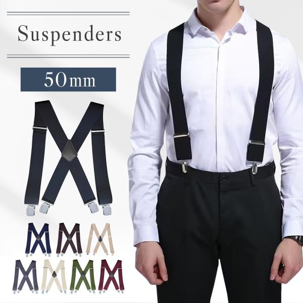 サスペンダー メンズ 50mm 幅広 太め X型 ゴム 吊りバンド ズボンつり 50代 おしゃれ シンプル ビジネス