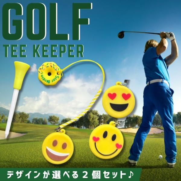 ゴルフ ティーキーパー 2個セット スマイルデザイン かわいい 紛失防止 軽量 コンパクト 持ち運び簡単 ラウンド便利グッズ メンズ レディース ギフト コンペ景品