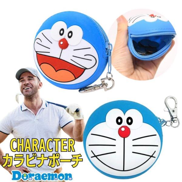 ドラえもん ミニカラビナ付きポーチ ゴルフボール ケース バッグ ポーチ ミニポーチ ドラえもん フェイス シリコンポーチ 小物入れ アニメ キャラクター