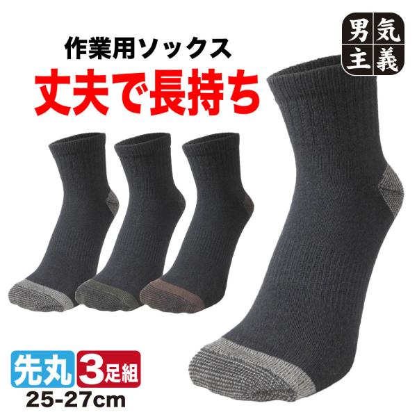 靴下 メンズ くるぶし 疲れにくい 3足セット 足の疲れを考えた ショート丈 黒 25cm-27cm 富士手袋