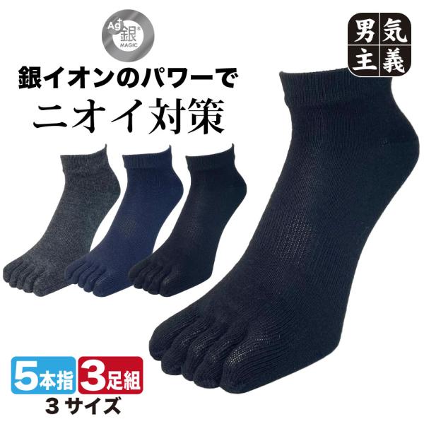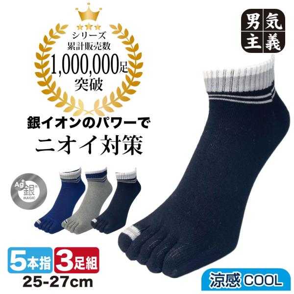 靴下 メンズ 5本指 3足組 メッシュ 消臭 抗菌 銀マジック 銀イオン 丈夫 五本指ソックス 蒸れない 臭わない 紳士 作業用 ワークソックス PAX-ASIAN 833 25-27cm