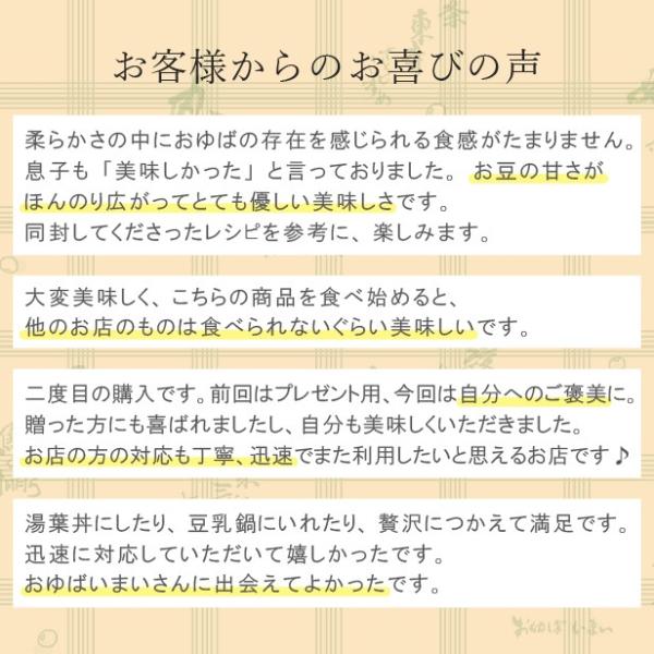 食べきりサイズ♪【無添加・国産大豆100%】小さい昆布だし入りおゆば(生ゆば)40g