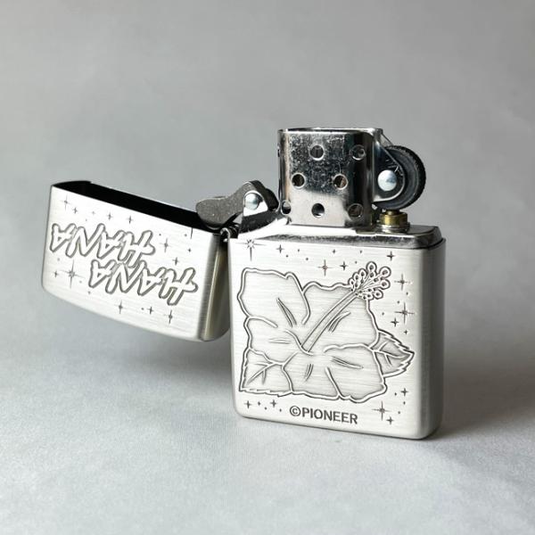 ハイビスカスとロゴがデザインされたシンプルクールなハナハナZIPPOライターです。