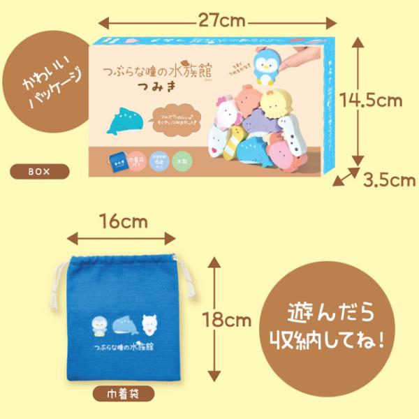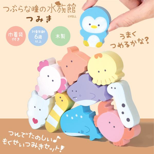 つぶらな瞳の水族館 つみき 巾着袋付 つぶらなシリーズ かわいい 知育玩具 木のおもちゃ