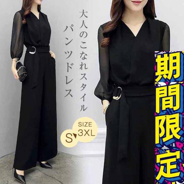 着るだけで美しいシルエット 痩せみえ効果 結婚式 二次会 ママ コーデ パンツドレス 大きいサイズ パーティードレス 着痩せ スタイル スッキリ 脚長効果