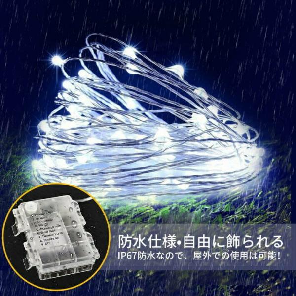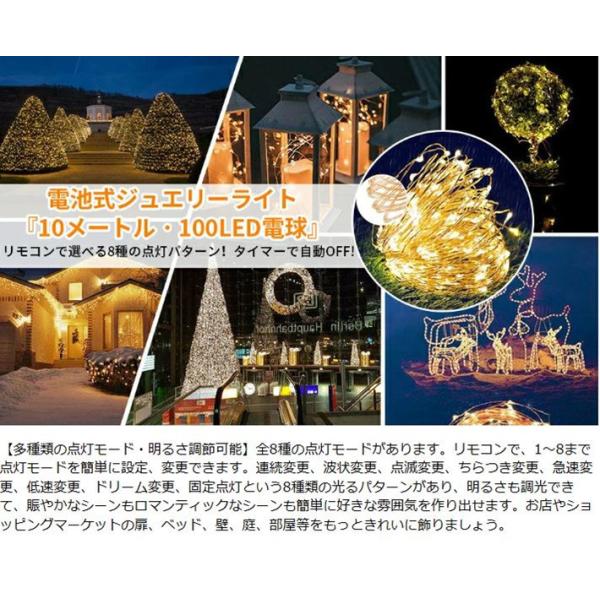 ledイルミネーションライト 100球 10m キャンプ 部屋 屋外 防水 ストリングライト ガーデンライト リモコン 電池式 点滅 点灯 室内 屋内 アウトドア