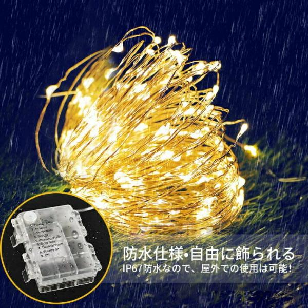 LEDイルミネーションライト ジュエリーライト 200球 20m 電池式 リモコン付 8パターン 点滅/点灯 タイマー機能 防水 クリスマス/ハロウィン飾り
