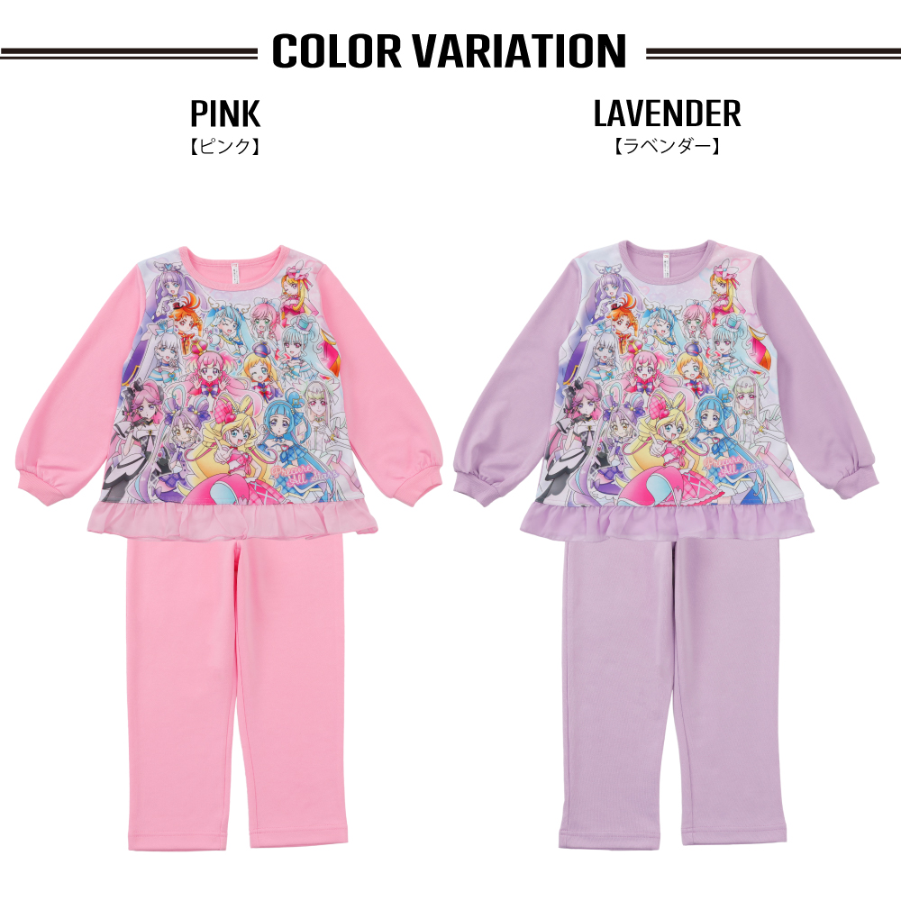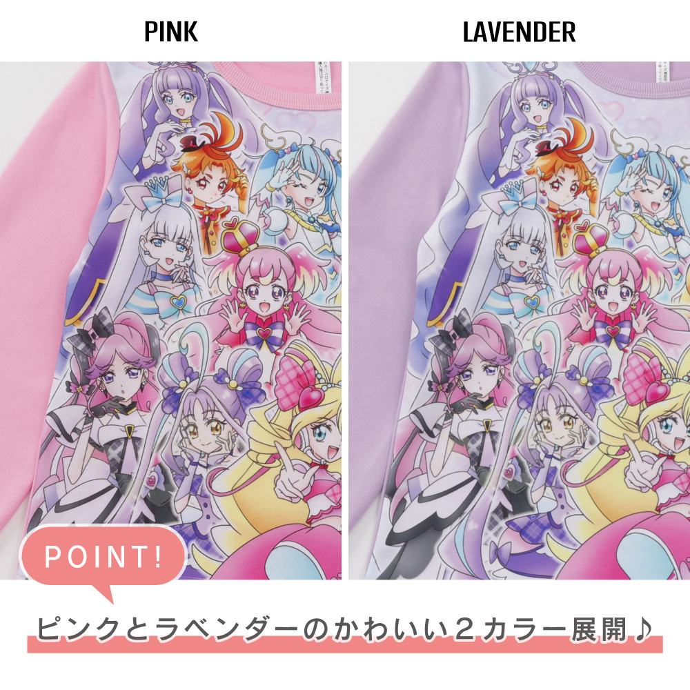 プリキュアオールスターズ 寝ても覚めても光るパジャマ 女の子 ガールズ 長袖 スウェット ルームウェア ピンク ラベンダー ギフト プレゼント 林間学校