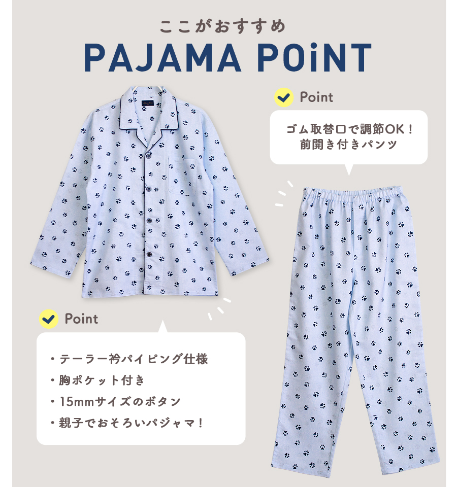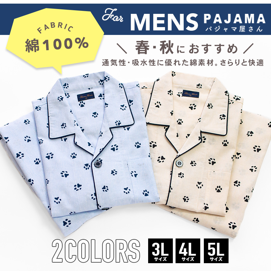 パジャマ メンズ 大きいサイズ 綿100% 長袖 春 秋 前開き ボタン 足跡 肉球 アニマル柄 3L 4L 5L 親子 おそろい