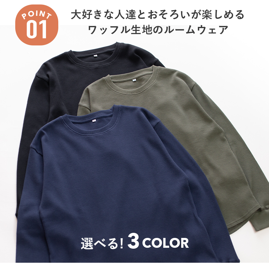 パジャマ メンズ 綿100% ワッフル 長袖 春 秋 カットソー リブ仕様 無地 ハニカム サーマル 親子 おそろい リンクコーデ ギフト プレゼント 父の日
