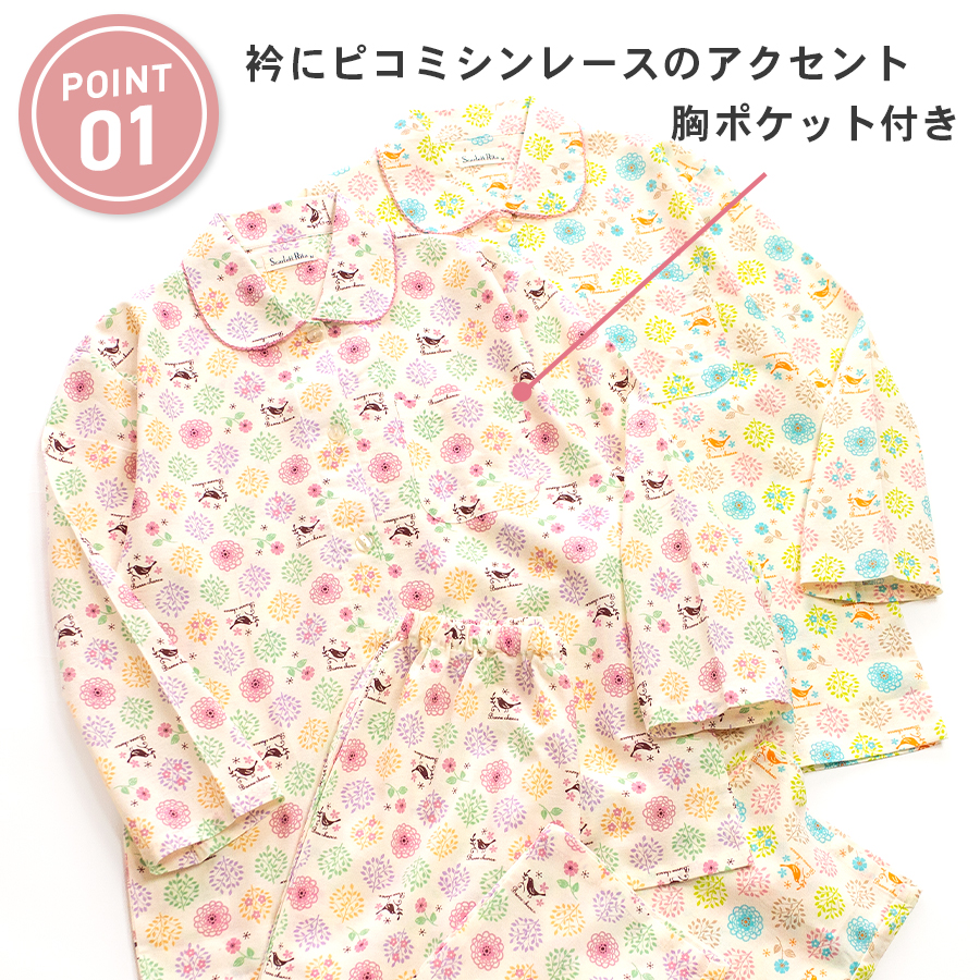 パジャマ レディース 綿100% 長袖 春 秋 前開き ボタン 森ガール柄 親子 おそろい