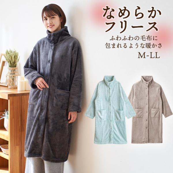 パジャマ レディース なめらかフリース 長袖 冬 暖かい ハイネック ふんわり軽い ルームウェア ガウン 着る毛布 ロング グレージュ チャコール M L LL