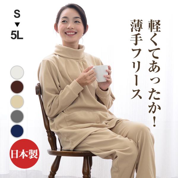 日本製 フリース パジャマ レディース 冬 前開き タートルネック 長袖 リブ あったか微笑みシリーズ 日本製 0923