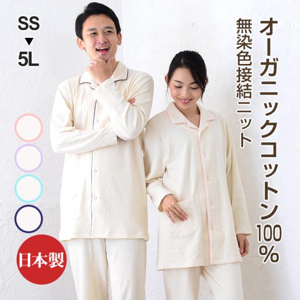 癒しのパジャマ パジャマ レディース メンズ ペア 冬春秋 男女兼用 無染色 オーガニックコットン 2重ニット長袖 リブ 丸首 かぶり アトピーの方 日本製 1220