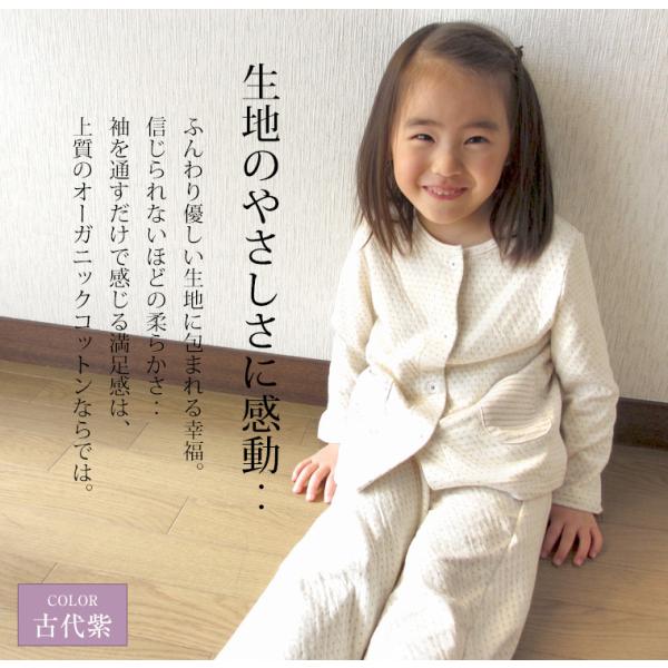 癒しのパジャマ キッズ 子供パジャマ 120 130 140サイズ 冬春秋 長袖 ボタン留め オーガニックコットン 天然染料・染色洛陽染め 日本製 0381