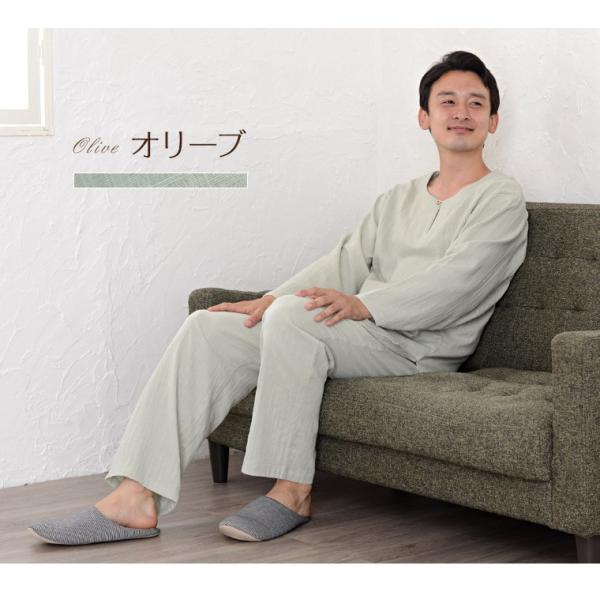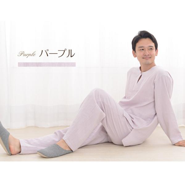 パジャマ メンズ 夏 長袖 丸首タイプ かぶり 半開き ふわっふわの綿スラブ二重ガーゼ 高級紳士パジャマ 日本製 父の日 ギフト 0505
