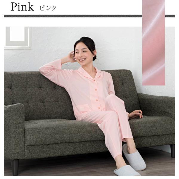 パジャマ レディース リヨセルシルクスムースニット 長袖 前開き 春秋用 ナイティ ルームウェア日本製 入院用、アトピーの方にも 母の日 ギフト 0591