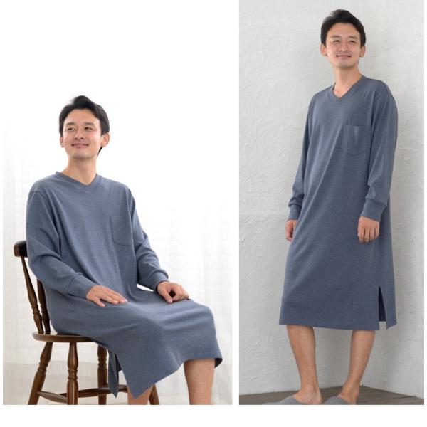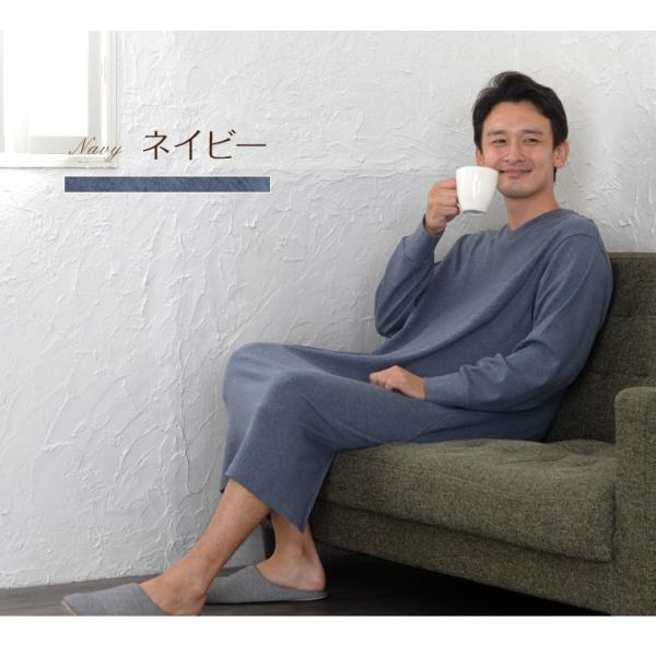 超快適パジャマ メンズ スリーパー 春 夏 秋 オーガニックコットン 綿 中厚スムース素材 長袖 Vネック かぶり ルームウェア 日本製 父の日 ギフト 0902