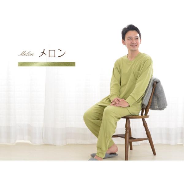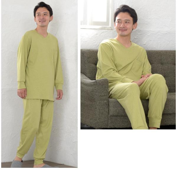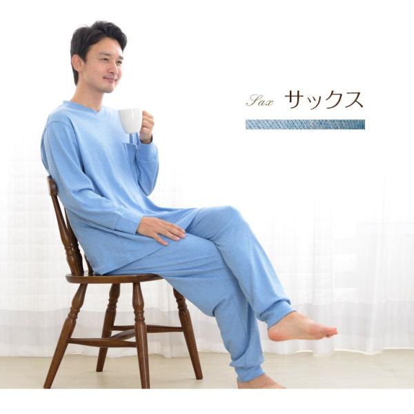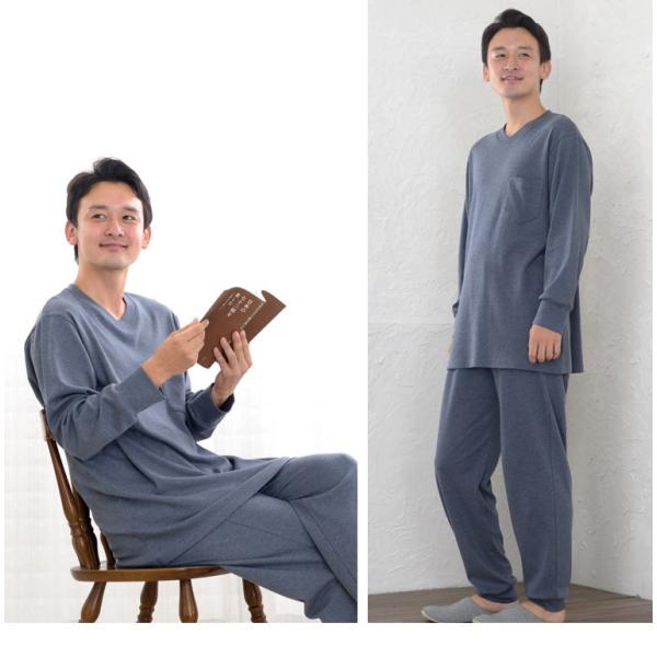 パジャマ メンズ オーガニックコットン 中厚スムースニット 春秋冬 長袖 Vネック かぶり 高級パジャマ お肌の敏感な方にも 日本製 父の日 ギフト 0912
