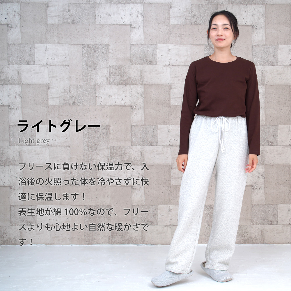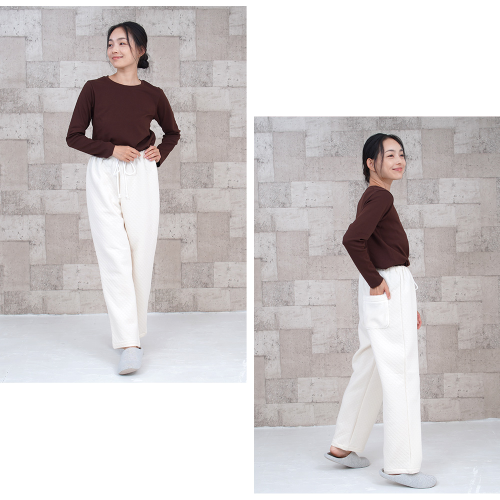 オーガニックコットンキルト ルームパンツ パジャマ あったかルームウェア 日本製 パンツのみ販売 1206
