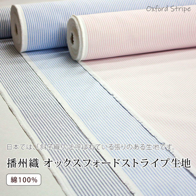 播州織 オックスフォード ストライプ先染め生地 斜子織り 綿100% (29130476)