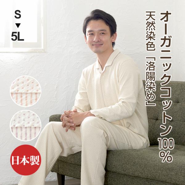 癒しのパジャマ 洛陽染めパジャマ メンズ 冬春秋オーガニックコットン 2重ニット 綿 天然染色 衿付き前開きテーラーカラー お肌の弱い方に 0340