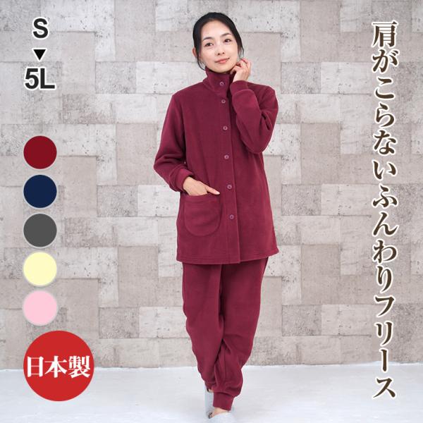 パジャマ レディース 冬 長袖 前開き 丸衿 中厚フリース あったか微笑みシリーズ 冬 日本製 0920