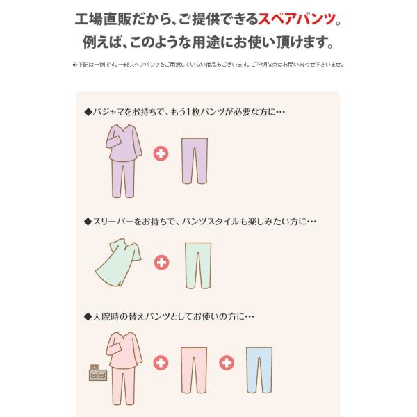 パンツのみご要望の方に。入院用の替えパンツ、スリーパーのパンツスタイルにも。パンツ単品でお買い求め頂けます。 レディース トリプルガーゼ