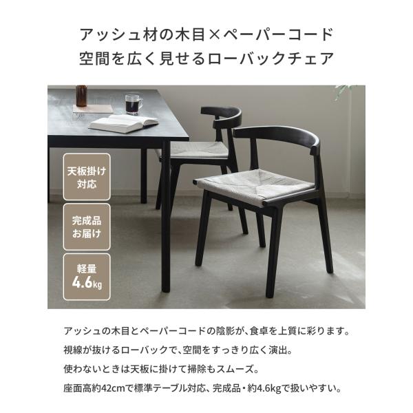 ダイニングチェア ルンバブル ペーパーコード 座面高42cm 椅子 チェア おしゃれ 木製 天然木 完成品 肘付き 背もたれ 一体型 肘短い 軽量 ナチュラル ブラウン
