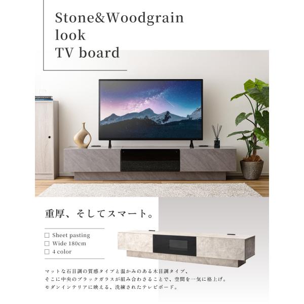 テレビ台 ローボード 180cm 収納 テレビスタンド 石目調 テレビボード TV台 TVボード おしゃれ シンプル 北欧 モダン ストーン柄 北欧 ブラック ホワイト