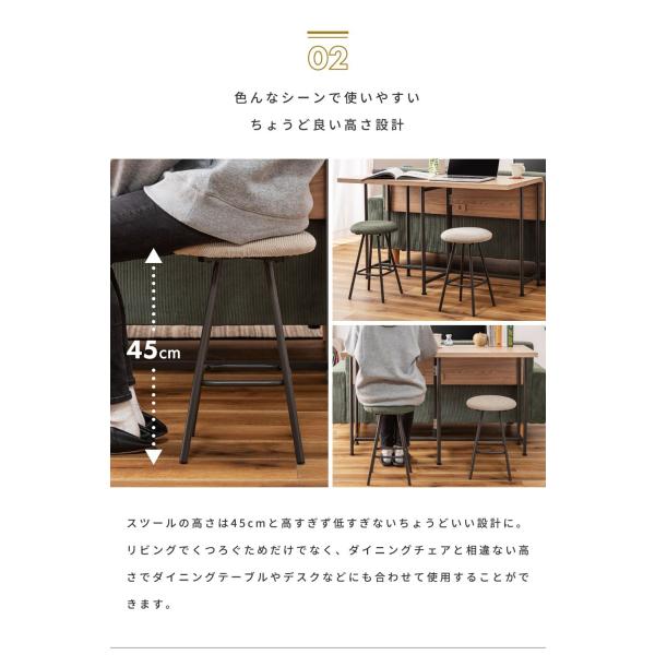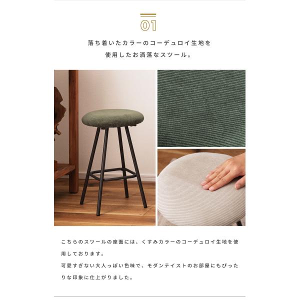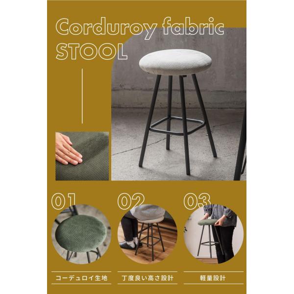 スツール スツール 椅子 丸椅子 おしゃれ 背もたれなし インダストリアル 円形 グリーン ライトグレー コーデュロイ スチール 軽い 軽量 アンティーク