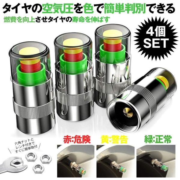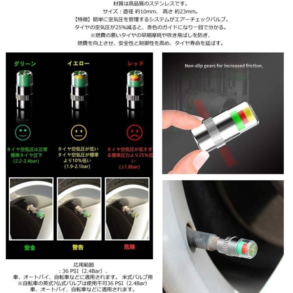 バルブ キャップ タイヤ エアー チェック 4個 セット エアバルブ タイヤバルブ 汎用 車 バイク 自転車 空気圧 測定 圧力 取り付け 簡単 工具付き 米式 AIRCHECKB
