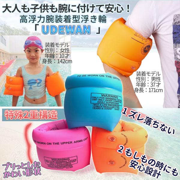 腕 浮き輪 大人 子供 左右 セット 海水 淡水 対応 水泳 海水浴 プール 補助 浮輪 ウキワ アーム リング ヘルパー 浮く 海 川 荷重 90kg キッズ 男女兼用 UDEWAN