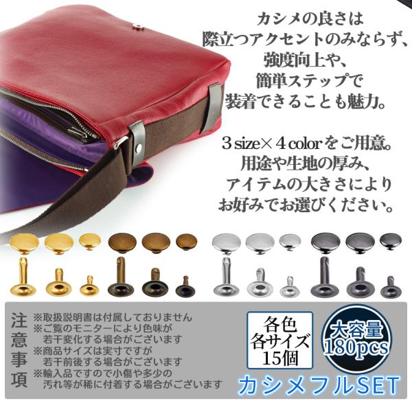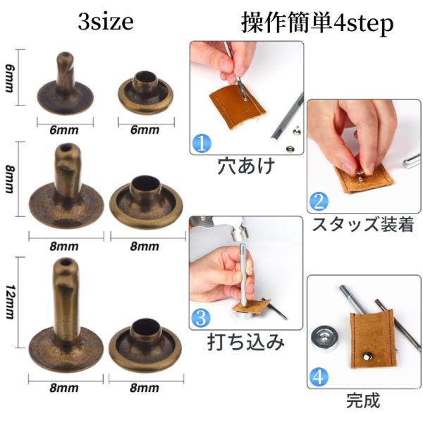 スタッズ 底鋲 打ち具セット スナップ かしめ 4色 180組 バネホック 打ち具 スナップボタン ハンドメイド カシメ 穴あけ レザークラフト DIY 12mm STAZZSET
