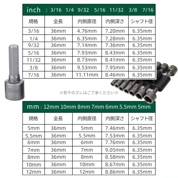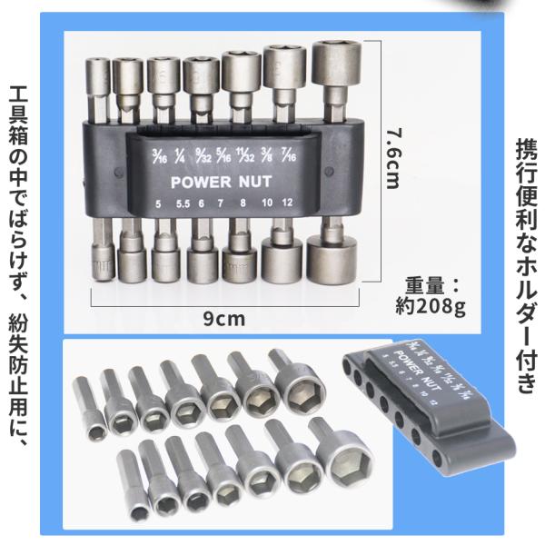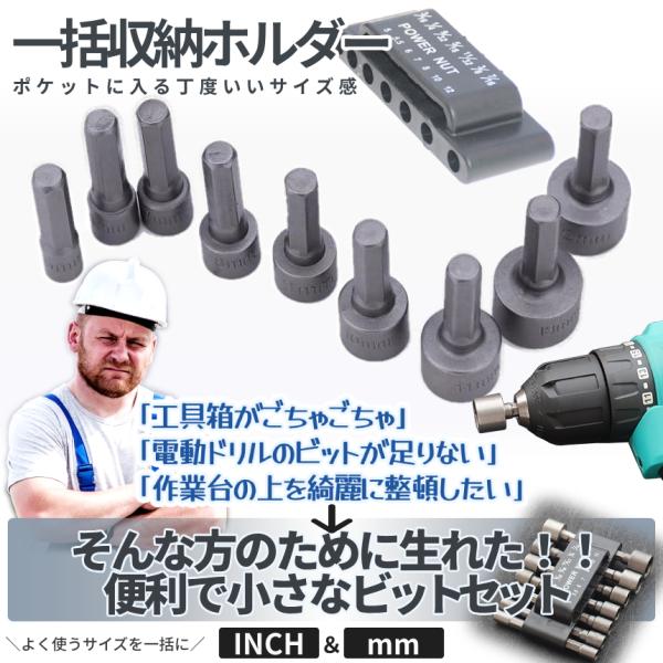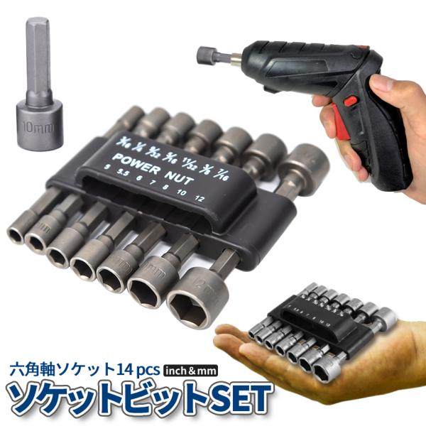 ソケットアダプター 14本セット 六角シャンク 六角軸 6.35mm ソケット ビット mm inch ミリ インチ 電動ドライバー インパクト 工具 DIY コンパクト 14KOGUBI