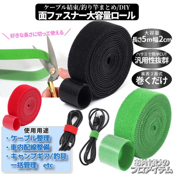 大容量 面ファスナー 5m ロール 20mm マジックテープ ベルクロ ケーブル収納 釣り竿ベルト キャンプギア 収納 集約 非粘着式 結束バンド MAJIKESS