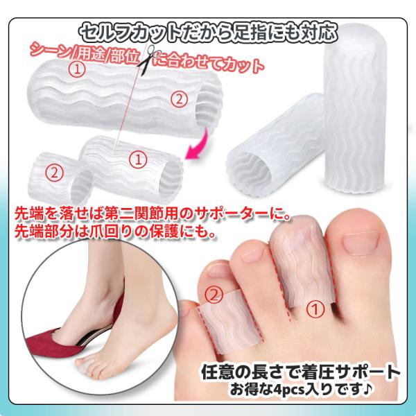 手指 着圧 シリコンサポーター 4pcs 男女兼用 半透明 防水 指 シリコン サポート 足指対応 セルフカット 裂傷 ばね指 PIP関節炎 ブシャール結節 BSYUBI