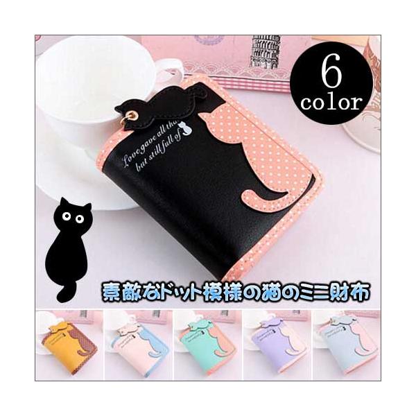 レディース財布 二つ折り財布 素敵なドット模様の猫のミニ財布 全6色 財布 女性用 さいふ サイフ ウォレット ショート財布 猫柄 ねこ 水玉 ドット ミニ財布