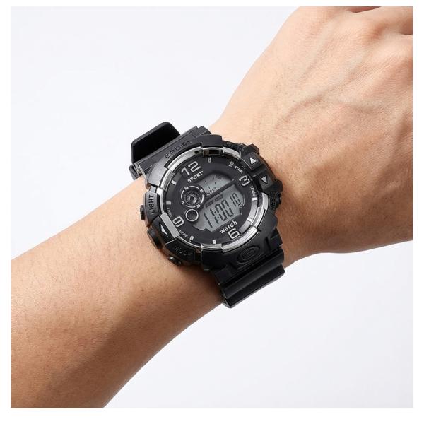 大画面 デジタル腕時計 レディース メンズ ビッグフェイス スポーツウォッチ LEDライト付き キッズ