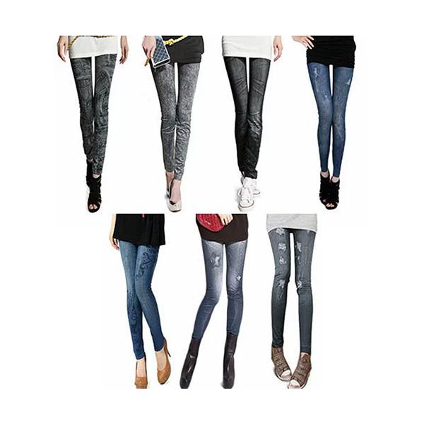 スキニー デニム レギンス レディース パンツ レギパン ジーンズ ストレッチ プリントデニム 9分丈
