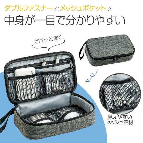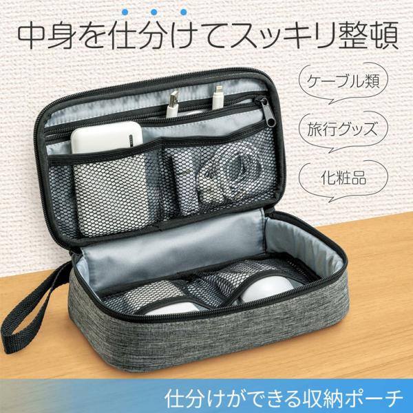 パソコンやカメラの周辺機器の仕分けなどに便利な収納ポーチ