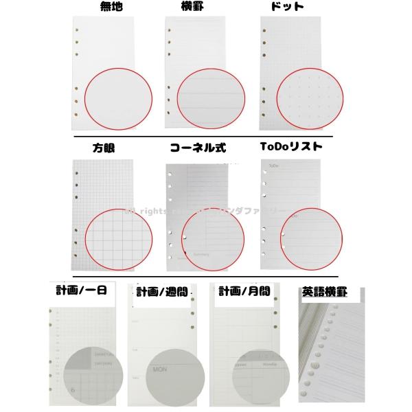 リフィル ルーズリーフ バイブル 6穴 A6 用紙 手帳用 90枚 無地 横罫 U罫 ドット 方眼 月間 ウィークリー デイリー メモ ファスナー付き ポケット