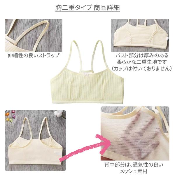 ハーフトップブラ スポーツブラ 2枚組 綿 ファーストブラ 伸縮性 ジュニア ガールズ 小学生 中学生 高校生 カップ付き 胸二重 メッシュ 2タイプ 白 グレー